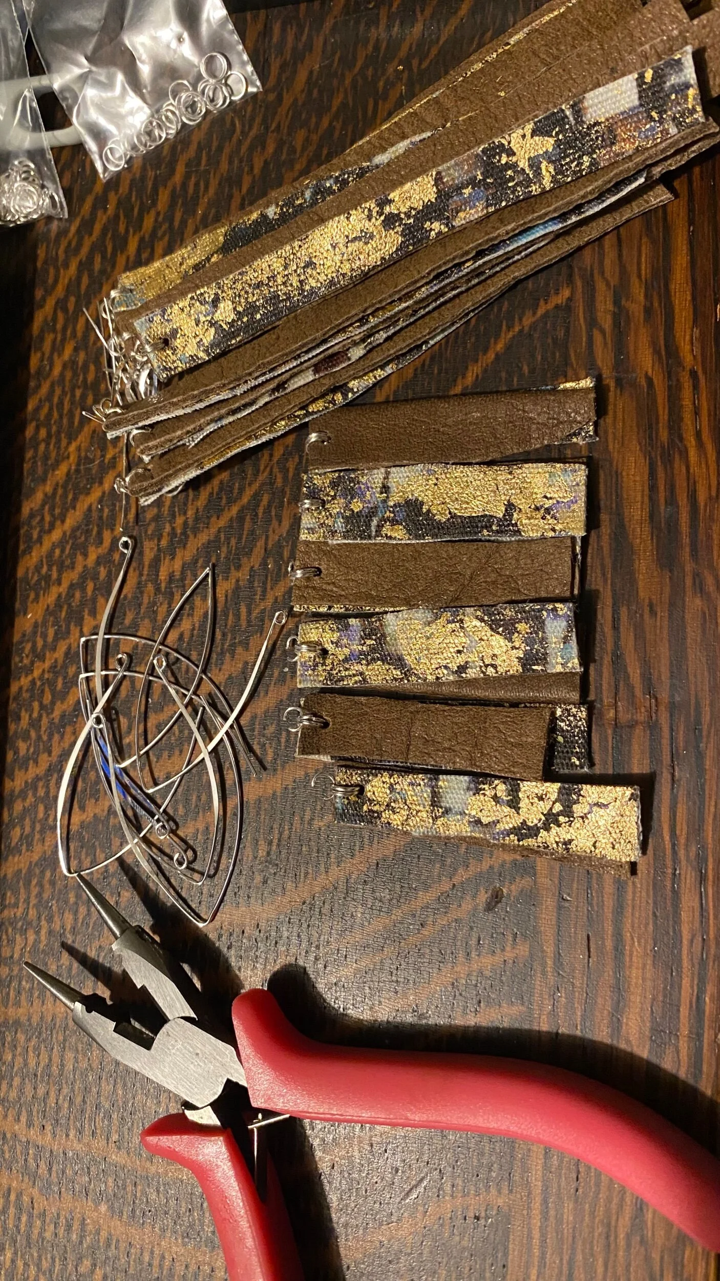 Image 1 of 6 Image 2 of 6 Image 3 of 6 Image 4 of 6 Image 5 of 6 Image 6 of 6 Recycled Leather Earrings | Short $20.00 Made from recycled leather, recycled fabric, 24 karat gold leaf, and 925 sterling silver earring hooks & all attachments. 3.5” long (including hook)Handmade with love in Bay City Michigan. Quantity: Add To Cart Added! Made from recycled leather, recycled fabric, 24 karat gold leaf, and 925 sterling silver earring hooks & all attachments. 3.5” long (including hook)Handmade with love in Bay City Michigan.